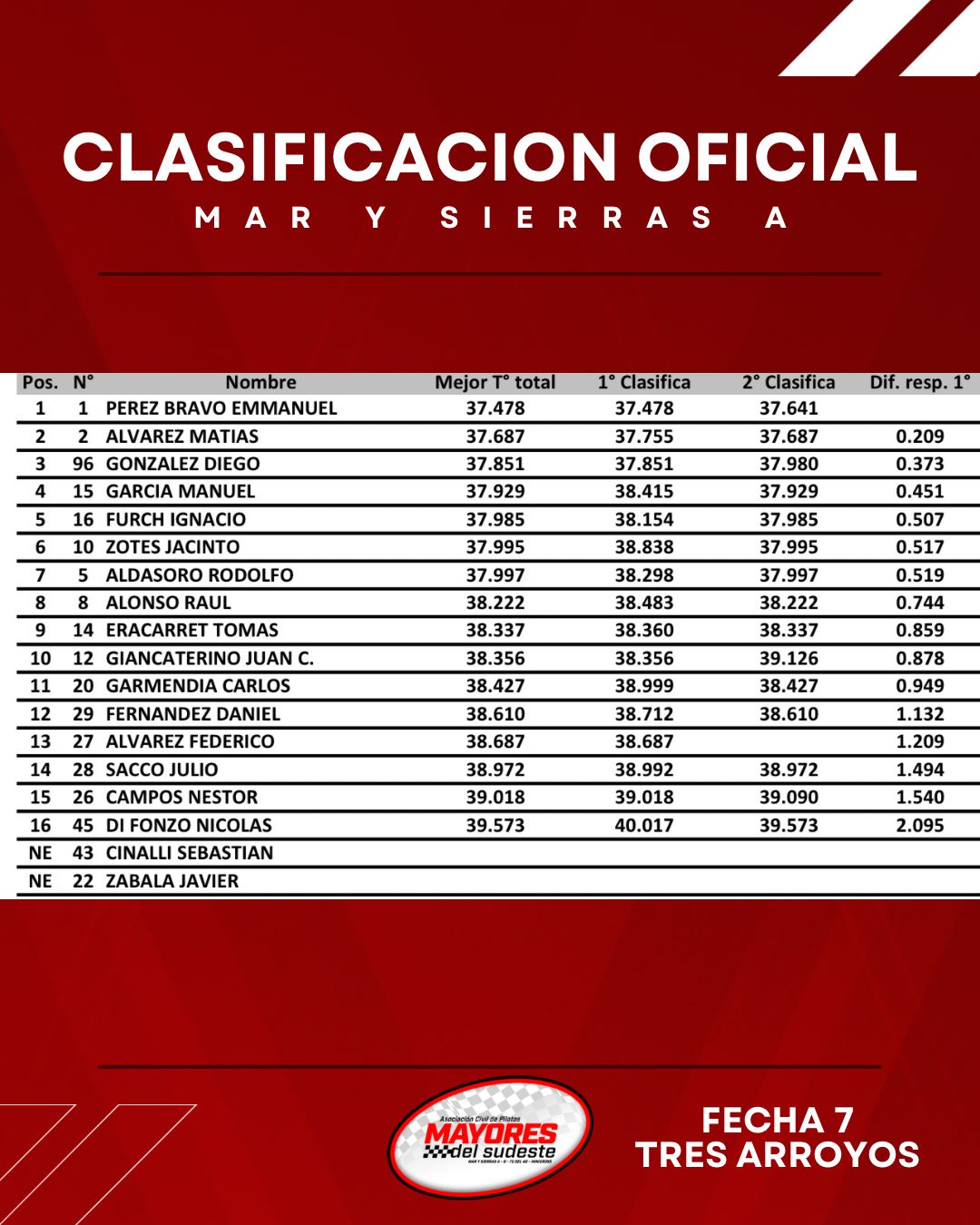 En Mar y Sierras A el sub campeón Matias Alvarez parecía que tenia todo para llevarse la pole pero fue en las clasificaciones que el campeón Emmanuel Perez Bravo se impuso con 37´478 seguido por Alvarez a 0,209 y Diego Gonzalez .